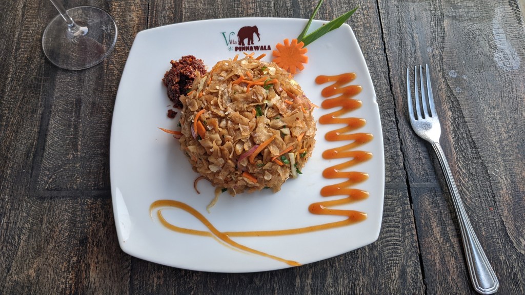 Ein weiteres Gericht, dass du unbedingt probieren musst, ist das Kottu. Dabei handelt es sich um gehacktes Fladenbrot, das gemeinsam mit Gemüse angebraten wird.