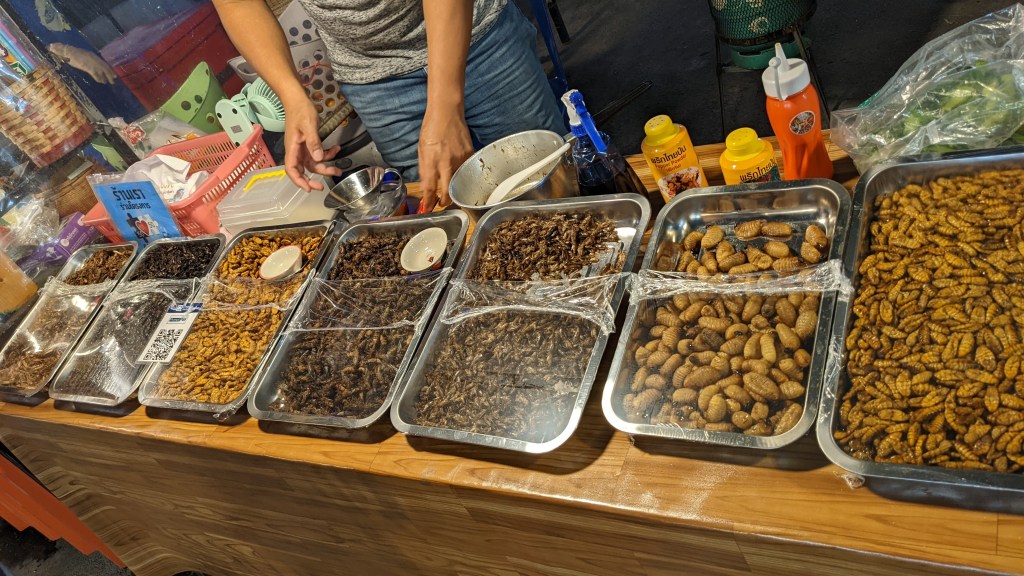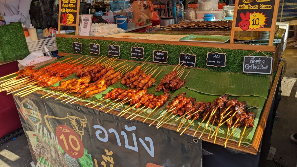 Die thailändische Küche ist sehr köstlich. Das traditionelle Pad Thai besteht aus Nudeln, Gemüse und Tofu. Als Nachspeise ist Mango Sticky Rice wohl am bekanntesten – das schmeckt auch sehr lecker. In Restaurants ist es generell so, dass die Teller erst abserviert werden, wenn man schon gegangen ist. Nur in den Tourismusgebieten wird wie bei uns abserviert, wenn man aufgegessen hat. Dies fanden wir am Anfang komisch, weil wir es nicht gewohnt waren, dass bis zum Zahlen und Gehen die benützen Teller am Tisch stehen. Nach kurzer Zeit haben wir uns aber daran gewöhnt. In der Kulinarik muss ich aber auch das Street Food erwähnen. Ich habe es immer sehr genossen am Abend durch die Straßen und Märkte zu schlendern und ein Street Food Ständchen nach dem anderen zu sehen – ganz frisch zubereitetes Street Food das absolute Kulinarik-Highlight in Thailand.